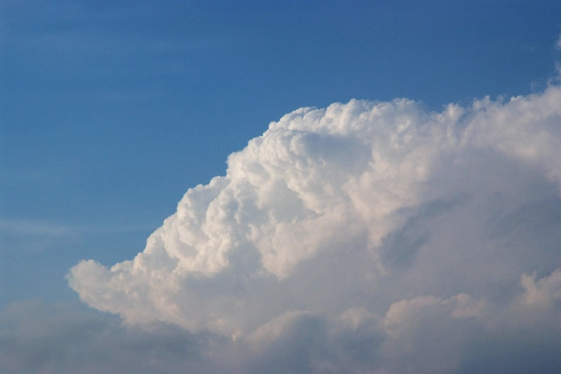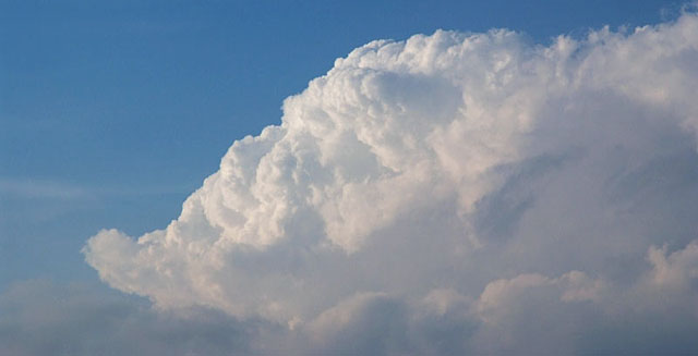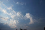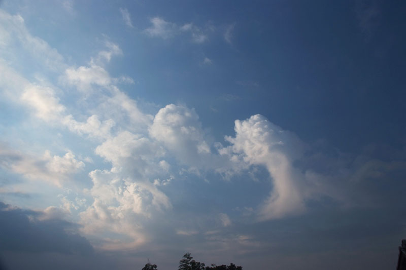 | 晴れた空でもところどころに大きな積雲。大気の状態が少し不安定なことをあらわしています。 レーダーっを見ると、昼頃に松阪市で、夕方に紀北町付近などで局地的な雨が降ったようです。 |
