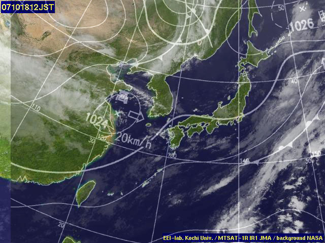 | (気象庁・東京大・高知大提供のひまわり赤外画像と気象庁・メテオプラネット提供の天気図を合成) | ||||