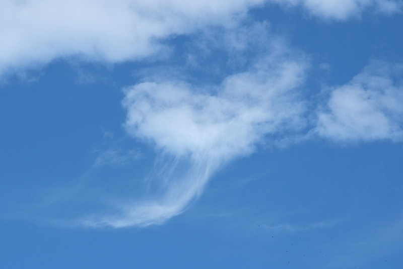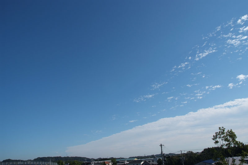 | 朝、高積雲が東へ流れ、快晴の天気に変わっていきました。 高積雲の尾流雲がたくさん見られました。 |