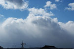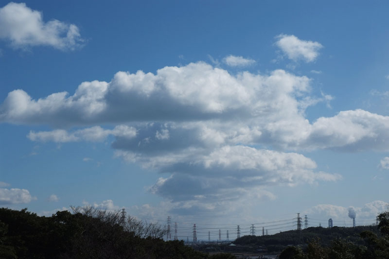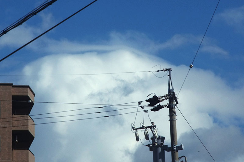| 西高東低の冬型気圧配置。 北北西から雪雲が入り、濃尾平野や三重県北部で晴れているのに、津市で7cmの積雪と なりました。(ひまわり画像でよくわかります) 桑名市では、青空と雪雲の入り混じる空が続き、空にも地上にも雪が舞う一日となりました。 そのほか、積雲の上にできるずきん雲やベール雲(ずきん雲の大きいもの)も多く見つかり ました。 |