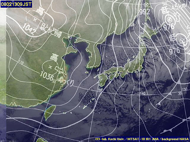 | (気象庁・東京大・高知大提供のひまわり赤外画像と気象庁・メテオプラネット提供の天気図を合成)09時 | ||||