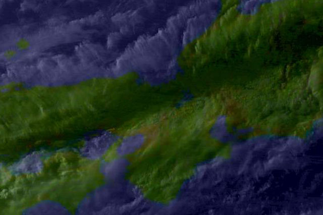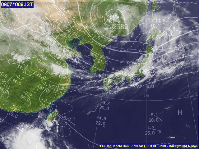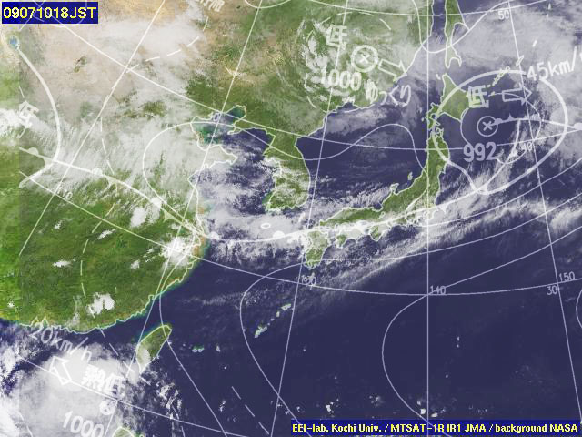 | 地上(気象庁・東京大・高知大提供のひまわり赤外画像と気象庁・メテオプラネット提供の天気図を合成) | ||||