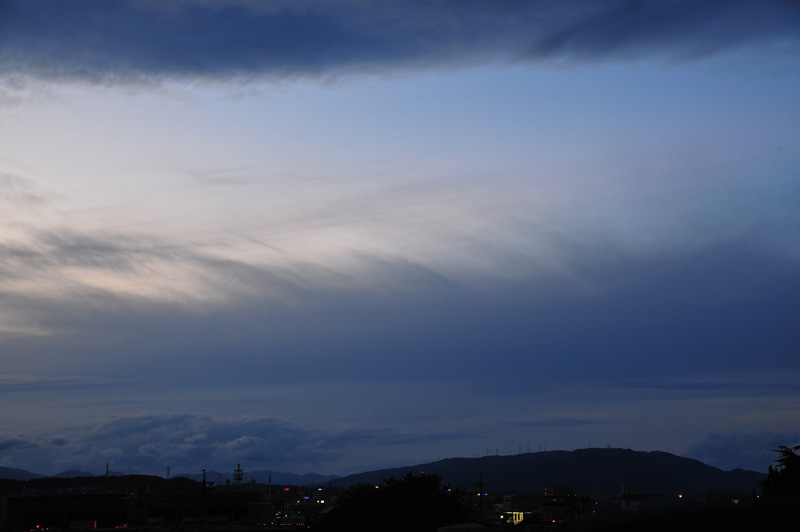 | 昨夜から何度も高積雲−波状雲−の目立つ空。尾流雲も多く見られました。 |