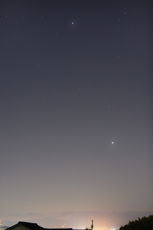 「宵空の木星・金星/カノープスの日周運動」 (桑名市 19:41) |