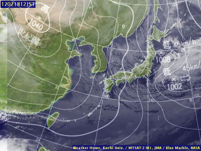 | 地上(気象庁・東京大・高知大提供のひまわり赤外画像と気象庁・メテオプラネット提供の天気図を合成) | ||||