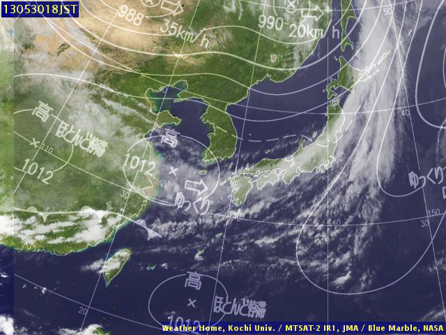 | 地上(気象庁・東京大・高知大提供のひまわり赤外画像と気象庁・メテオプラネット提供の天気図を合成) | ||||