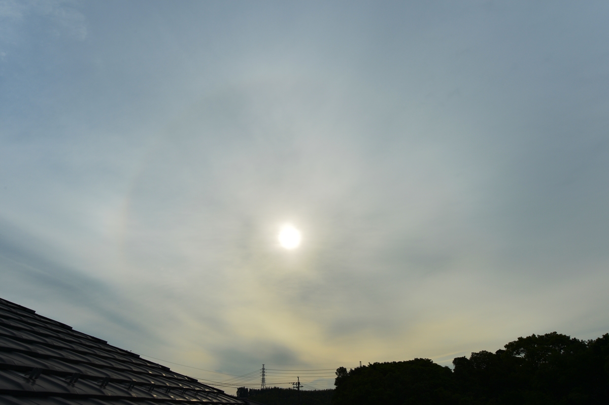 | 朝、目覚めると、東の空に淡いハロ。 北海道にある寒冷渦の影響で、冷たい西風が吹いて、 鈴鹿山脈の風下に、レンズ雲のような高層雲も。 高層雲にレンズ雲はないので、高積雲ということになるかもしれませんが、山脈の風下に雲が なく、少し離れたところから高層雲が広がっているという状態でした。 |