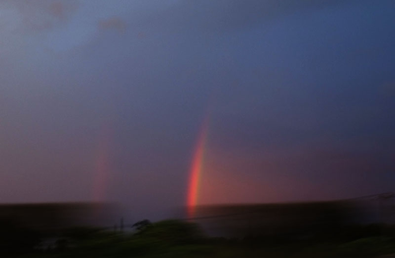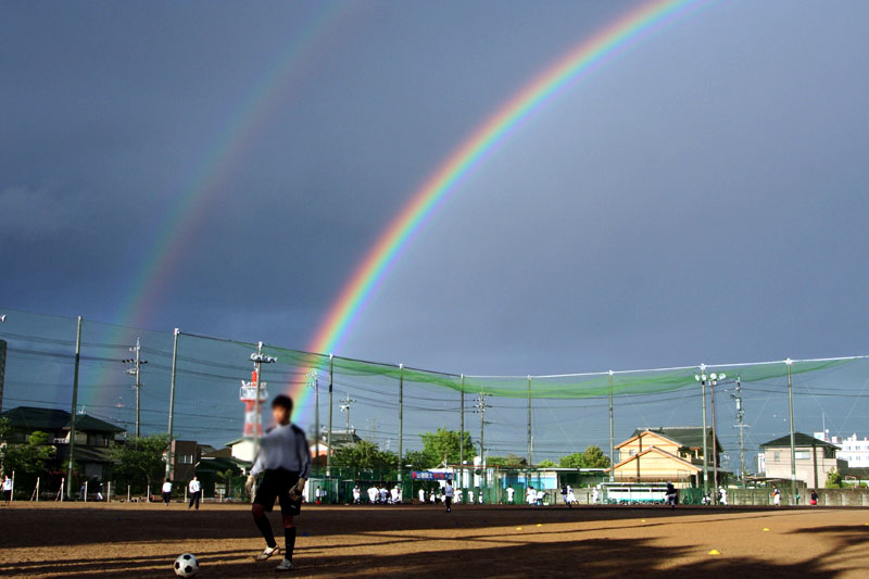 | 太陽の下方46°にあらわれる。「水平虹」と呼ばれることもある。太陽に近い側が赤色。 | ||