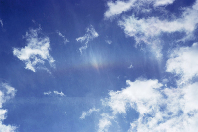 | 太陽の上方46°の位置に、天頂を取り囲むような曲率であらわれる。 「さかさ虹」と呼ばれることもある。色鮮やかに見られることが多い。太陽に近い側が赤色。 |