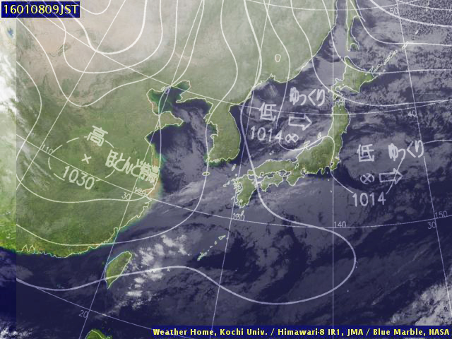 | 地上(気象庁・東京大・高知大提供のひまわり赤外画像と気象庁・メテオプラネット提供の天気図を合成) | ||||