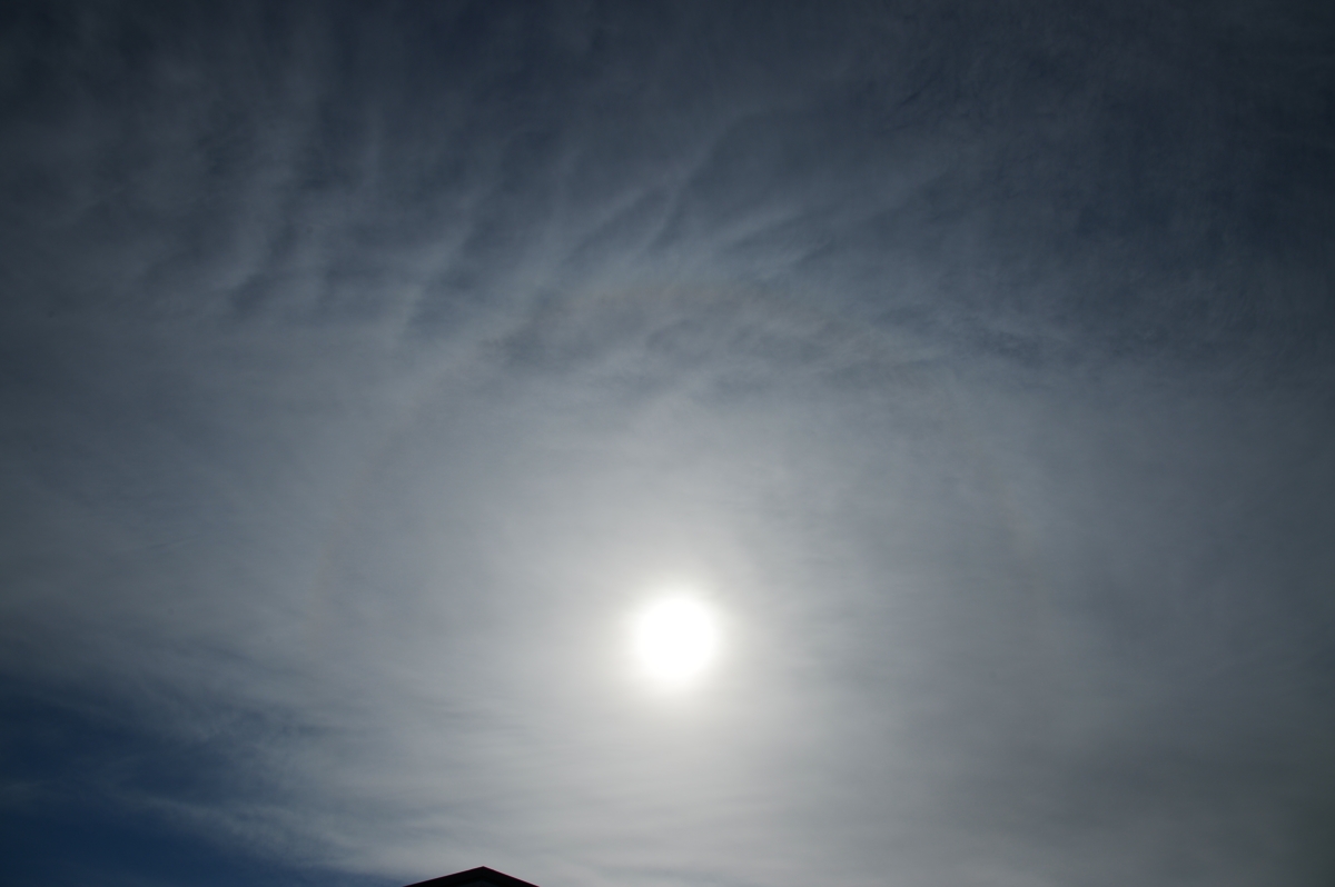 | 最低/最高気温が、.0/9.1℃ととても寒い一日。 南岸に前線が近づいてきた影響で、巻層雲や高層雲などの雲。 朝には幻日、昼には22°ハロが見られました。 |