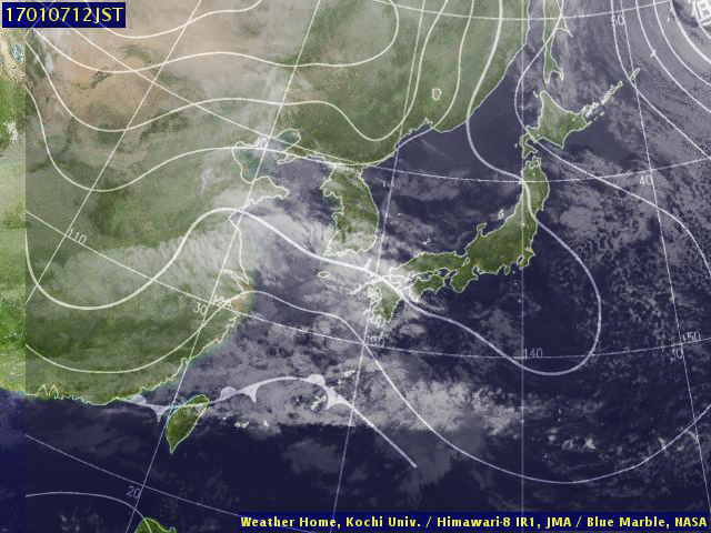 | 地上(気象庁・東京大・高知大提供のひまわり赤外画像と気象庁・メテオプラネット提供の天気図を合成) | ||||