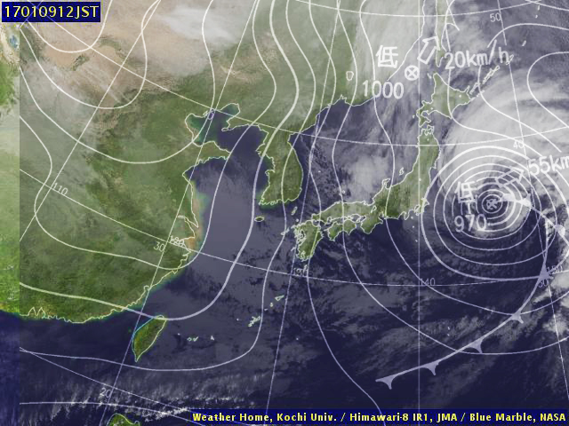 | 地上(気象庁・東京大・高知大提供のひまわり赤外画像と気象庁・メテオプラネット提供の天気図を合成) | ||||