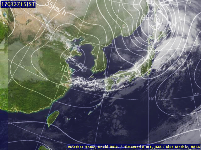 (気象庁・東京大・高知大提供のひまわり赤外画像と気象庁・メテオプラネット提供の天気図を合成)