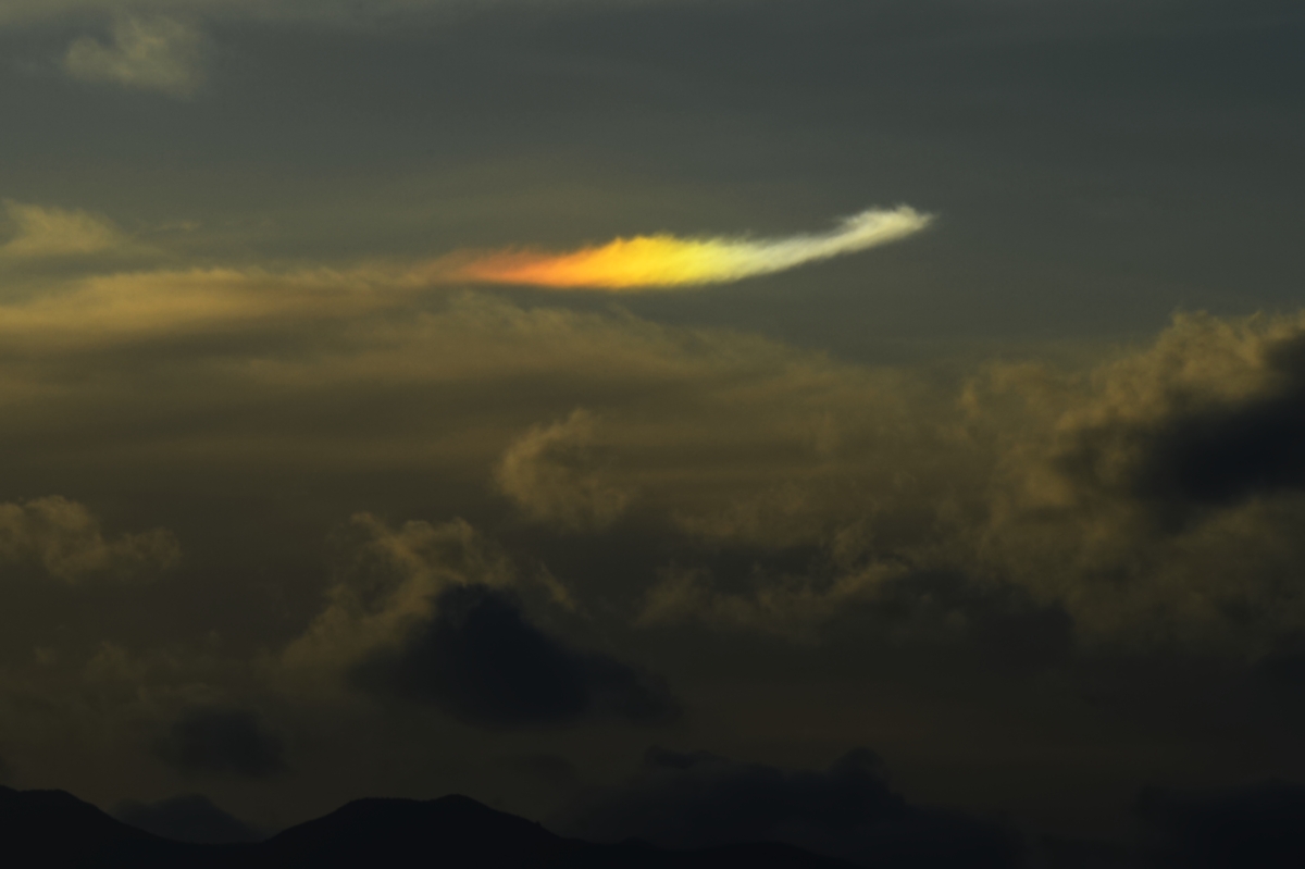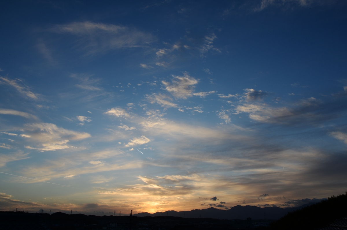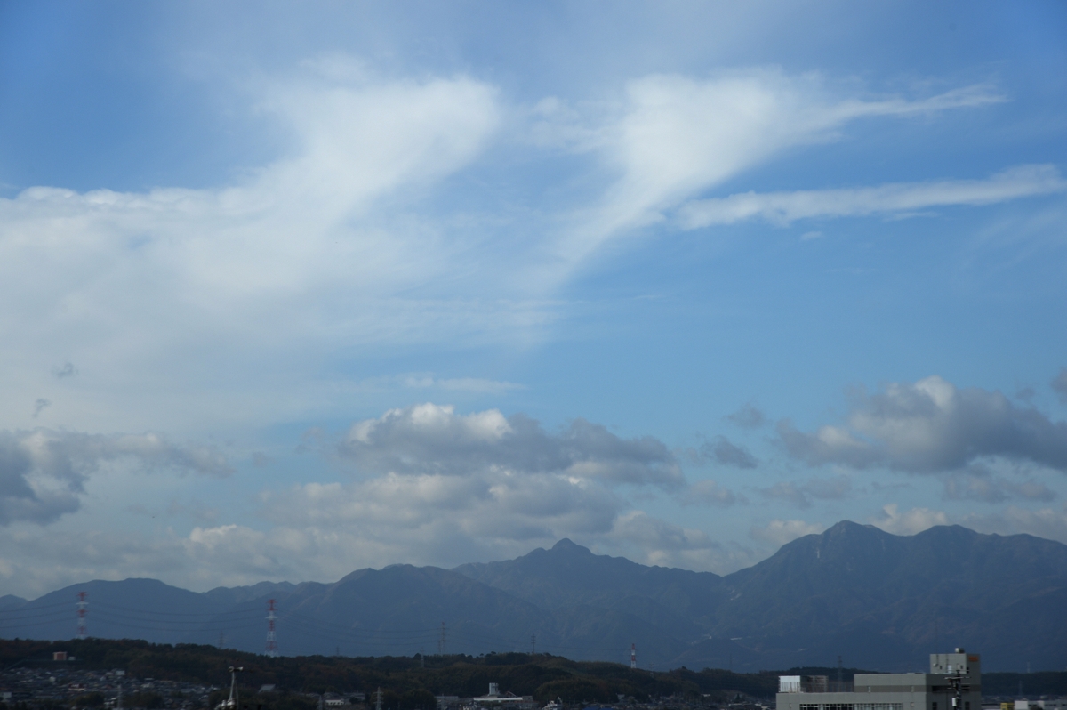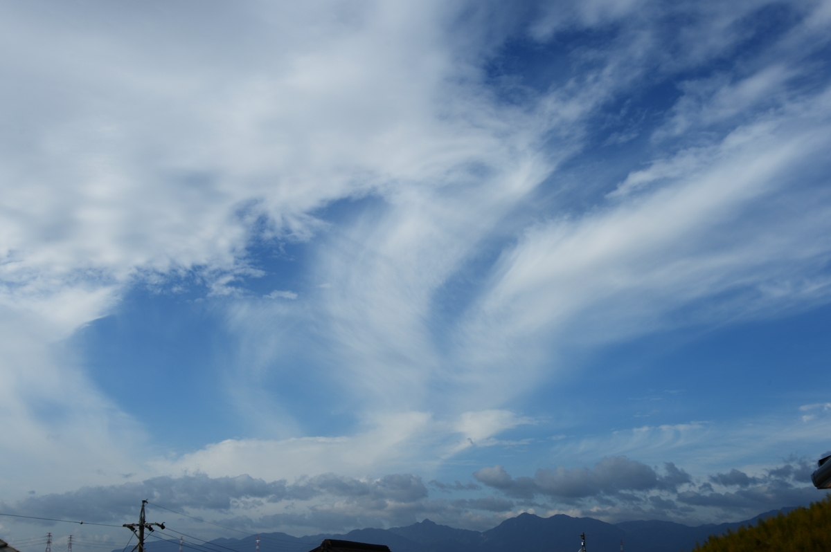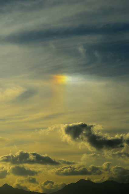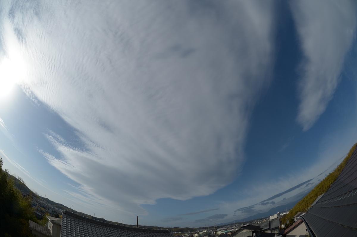 | 昨夜、寒冷前線が通過して寒気が流入。午前中は鈴鹿山脈を越える 気流によるレンズ雲や波状雲が多く見られました。 午後には巻雲が流れてきて、美しい幻日が輝きました。 |