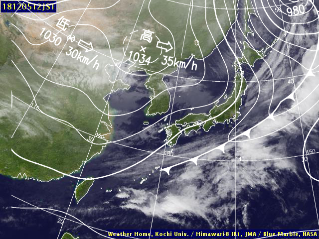 | 地上(気象庁・東京大・高知大提供のひまわり赤外画像と気象庁・メテオプラネット提供の天気図を合成) | ||||