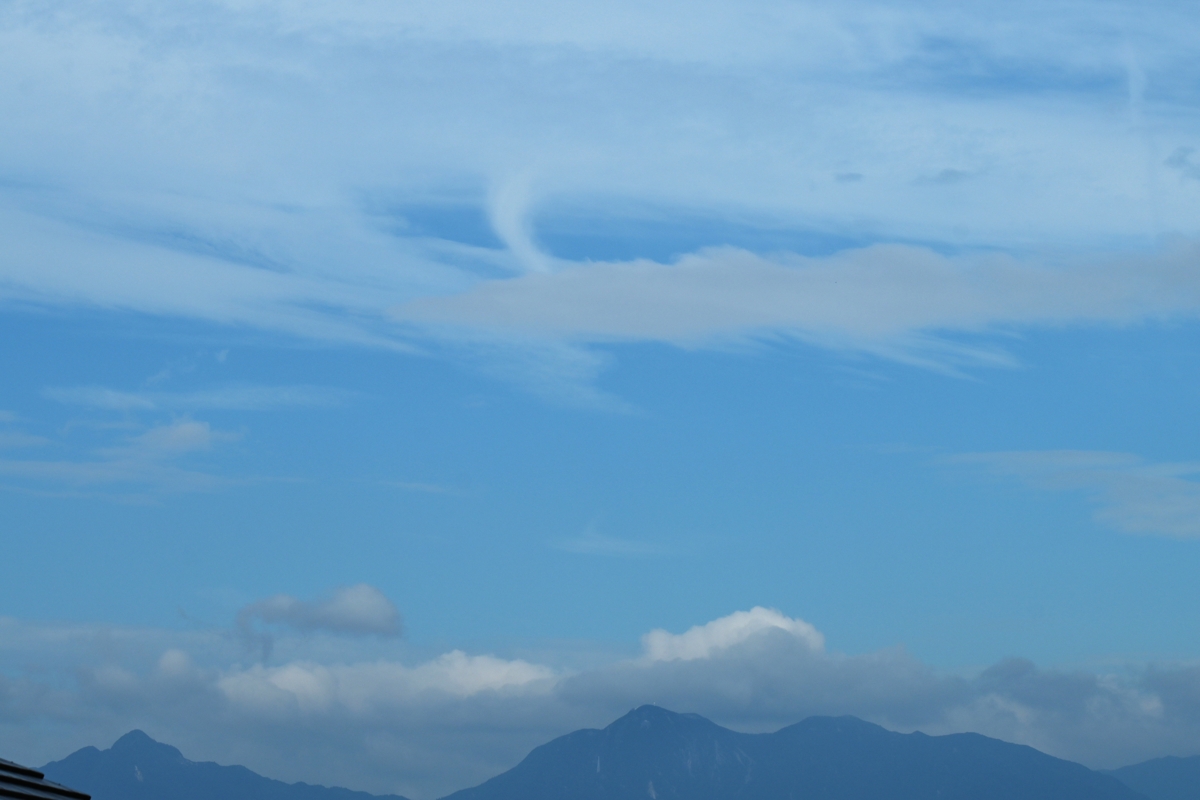 「塔状雲・穴あき雲・尾流雲 −巻積雲−)」 (桑名市) |