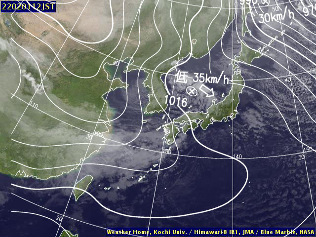 | 地上(高知大学気象情報頁赤外画像と気象庁速報天気図を合成) |
