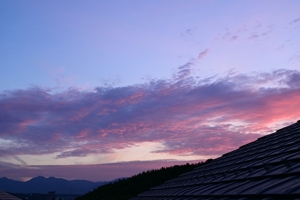 夕焼雲 19:18 西42mm 低めの高積雲のよう。 |
