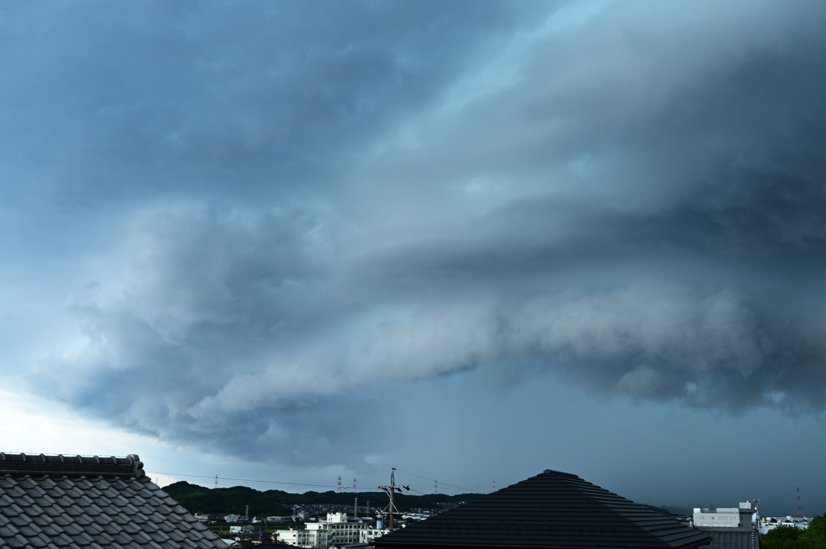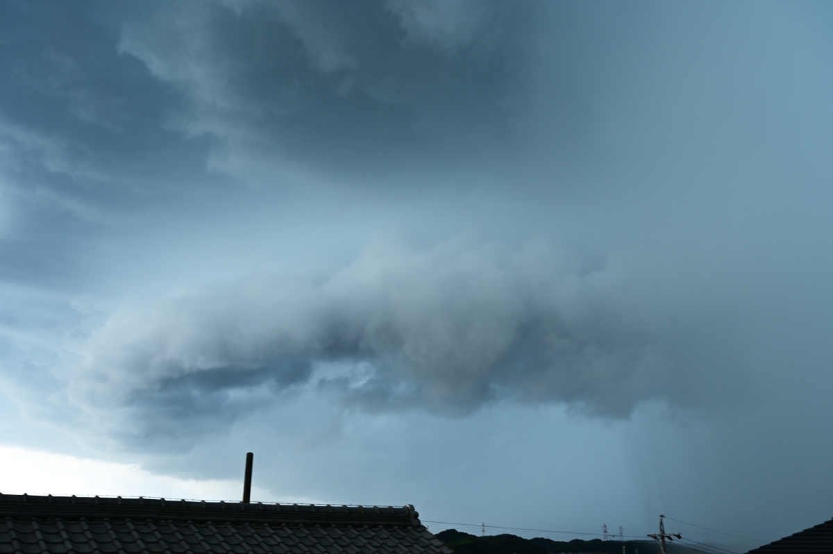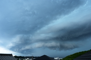 | 昼過ぎに35.9℃を記録した後、午後から夕方にかけて 西から2度の雷雨が襲来しました。 たくさんの雄大雲や積乱雲が発生し、雷雨前にもごく短時間の 驟雨が何度かあり、15時前に一度目の本格的な雷雨。 雷の写真は土砂降りの中でのもので、雨滴がたくさん シルエットになって、あまり美しいものではなし。 雷雨後、去っていった雷雲が真っ白に輝きました。 そして16時過ぎには2度目の雷雨。 雷鳴を聞いて西の空を見ると、今日も見事なアーチ雲です。 6月28日、7月10日(一昨日)に続いて今シーズン3回目。 アーチ雲の頭上通過を待ち受けていたまさにそのとき、 突然の驟雨で周囲が何も見えなくなってしまいました。 近距離の雷も何度もありましたが稲妻を目撃できたのは 雷雨終息後の去っていく雷雲のもの(音は無し)でした。 今年は梅雨前線の活動に伴う積乱雲が多く、典型的な アーチ雲が迫るシーンが頻繁に見られています。 梅雨明けまで、目が離せない感じです。 |