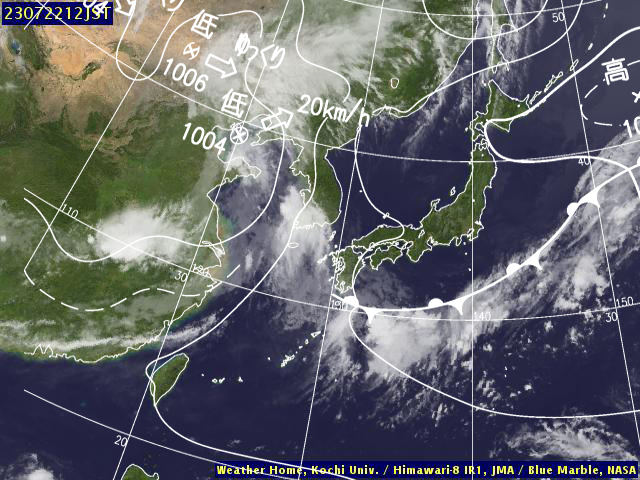 | 地上(高知大学気象情報頁赤外画像と気象庁速報天気図を合成) | |||