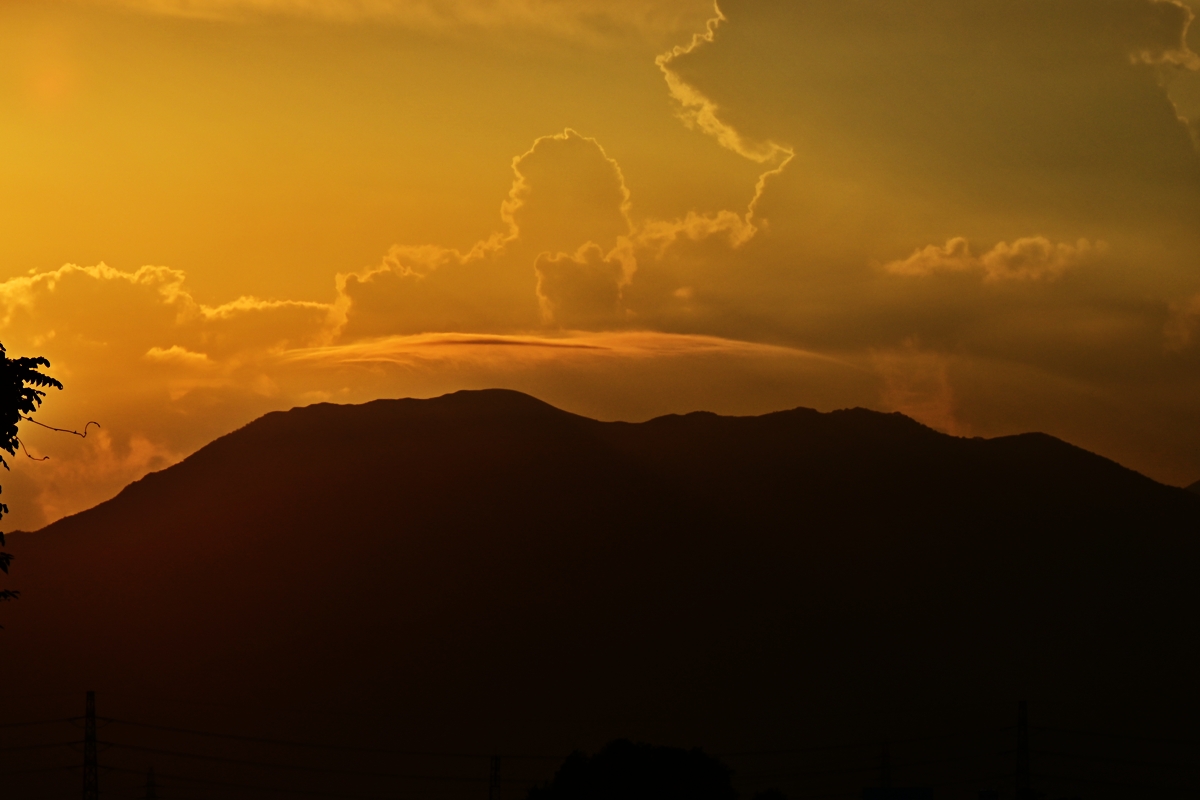 レンズ雲(笠雲) 18:22 西北西 300mm 釈迦が岳にかかる笠雲。 すぐに消えた。 |