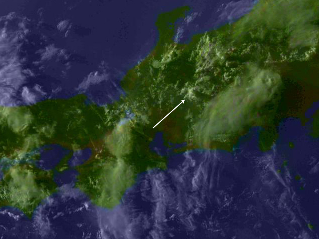 | 地上(高知大学気象情報頁赤外画像と気象庁速報天気図を合成) | |||