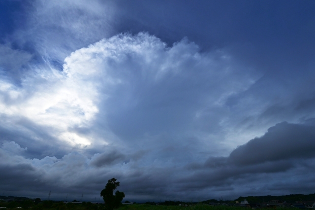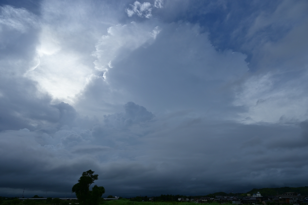 | 午後、桑名市で驟雨。夕方、員弁川が濁流で増水。 夜にはいなべ市藤原町で土砂災害警戒情報(レベル4)。 避難指示などが出されました。 写真は16時台に雷鳴が聞こえた積乱雲。いなべ市の鈴鹿山脈付近で 発達したもののようで、やがて南東から押し寄せる下層雲にかき消されて 日没となりましたが、その後も新たな積乱雲が発達して大雨となったようです。 |