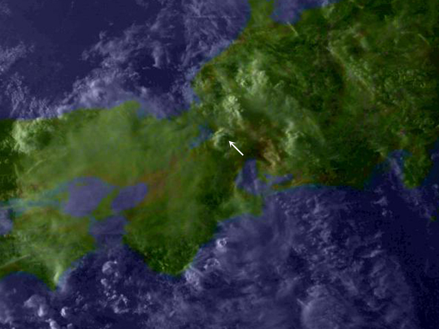 | 地上(高知大学気象情報頁赤外画像と気象庁速報天気図を合成) | |||