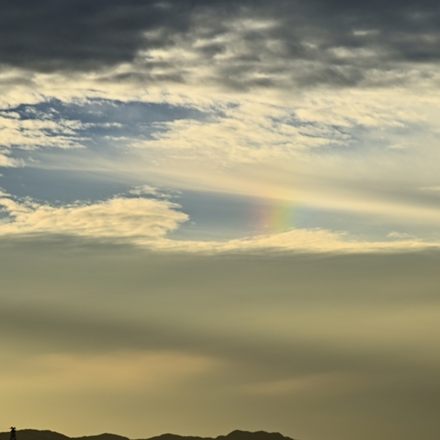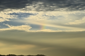 穴あき雲の尾流雲に幻日 16:54 西北西 185mm |