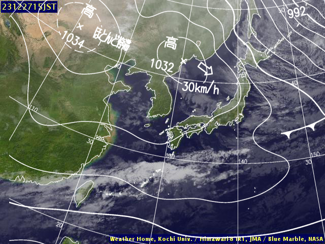 | 地上(高知大学気象情報頁赤外画像と気象庁速報天気図を合成) | |||