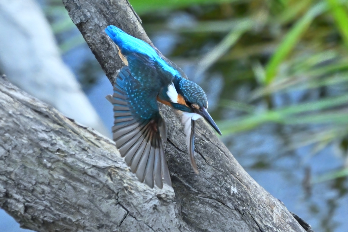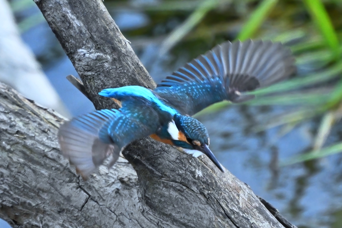 そこへ、突然カワセミの鳴き声がして、飛んでくるところから撮影できました。