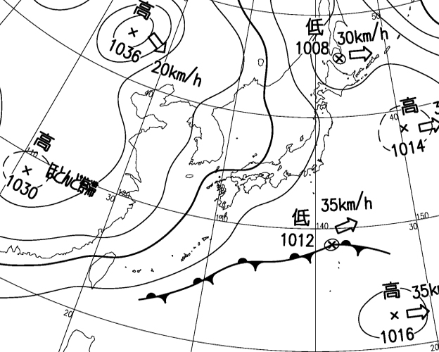 | 地上(高知大学気象情報頁赤外画像と気象庁速報天気図を合成)12h | |||