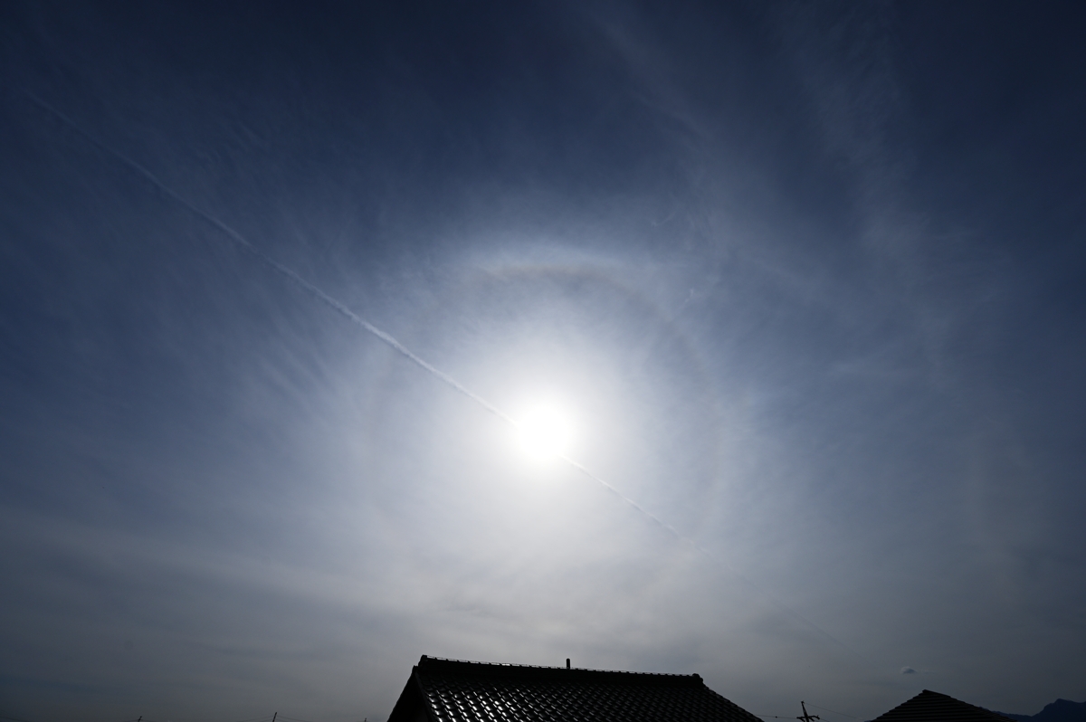 | 飛行機雲に幻日 8:13 210mm |