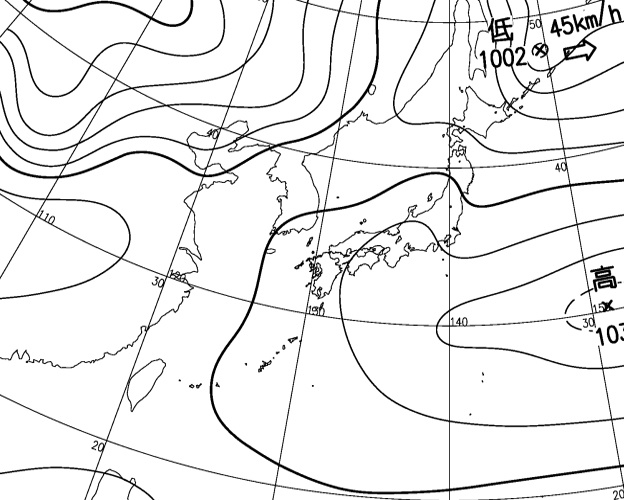 | 地上(高知大学気象情報頁赤外画像と気象庁速報天気図を合成)15h | |||