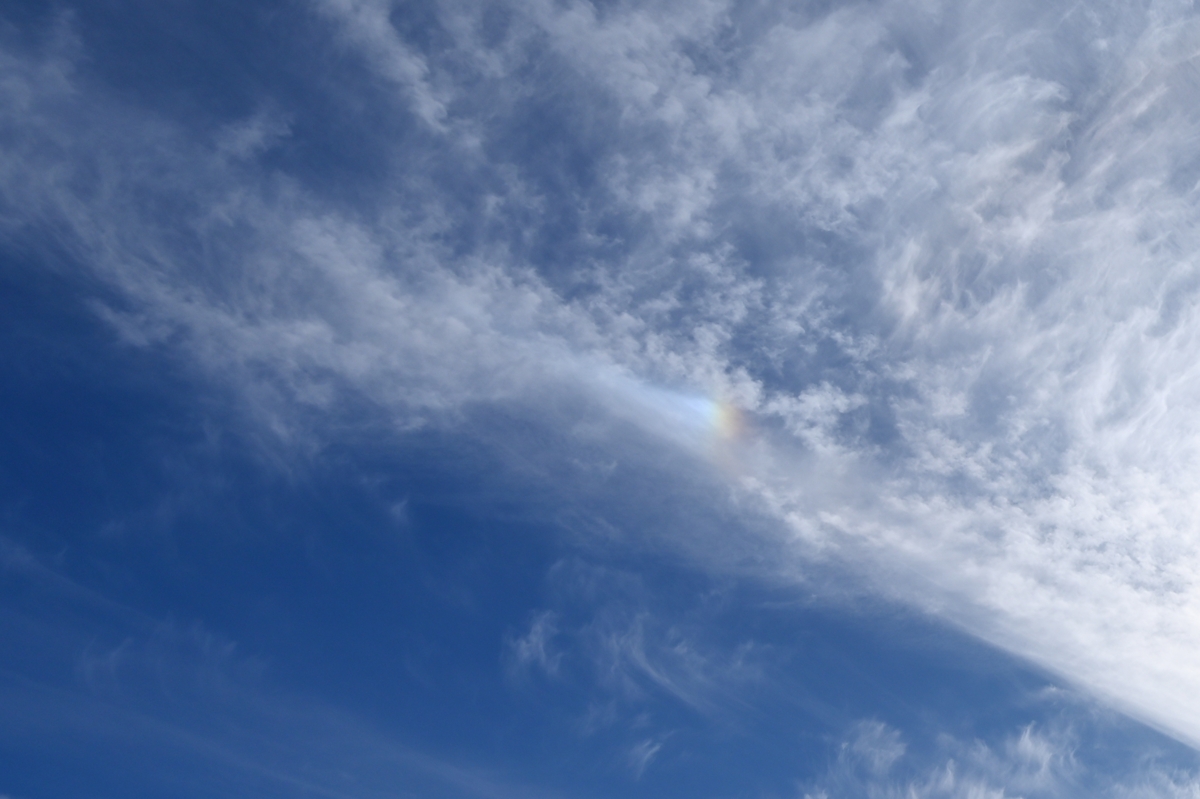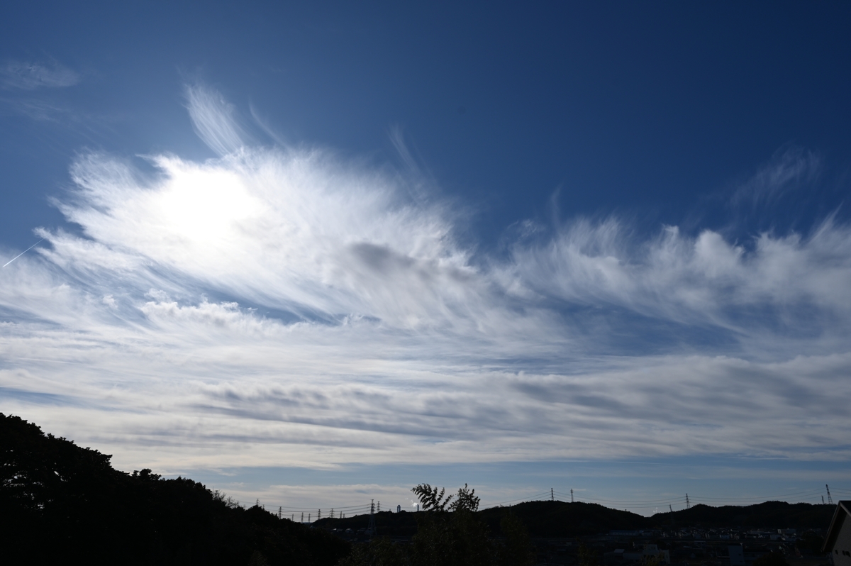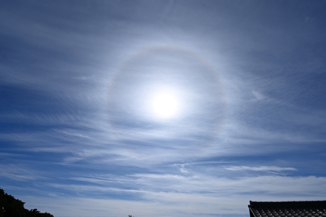 | 昨夜の日本海低気圧の通過に伴い、前線も南下しましたが、 南の空に巻雲や巻積雲、巻層雲などが東西に延びて分布。 ときどき、鮮やかな22°ハロや幻日が見られました。 今月はハロ(大気光象)の見られた日がすでに8日目に達していて、 2月として記録的な頻度のようです。 |