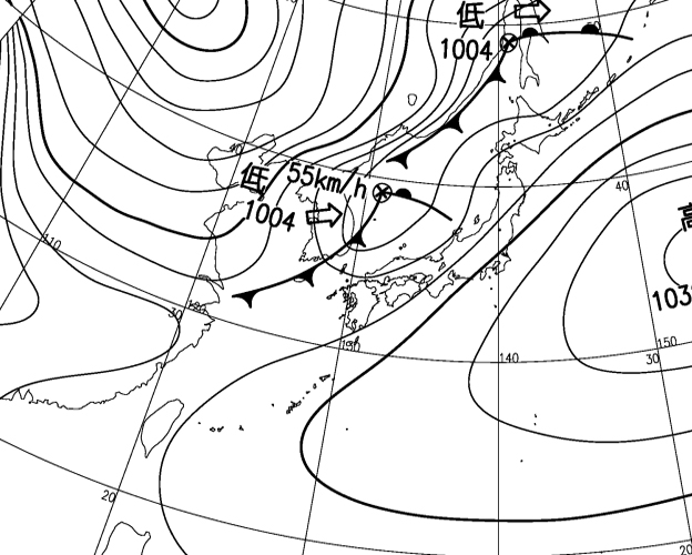 (高知大学気象情報頁赤外画像と気象庁速報天気図を合成)15h