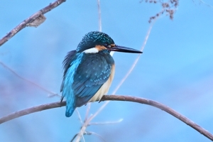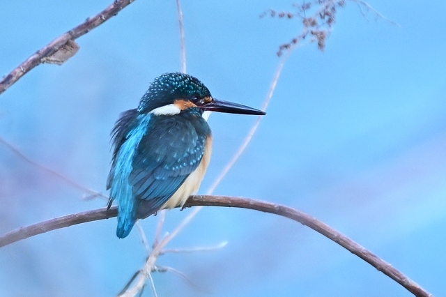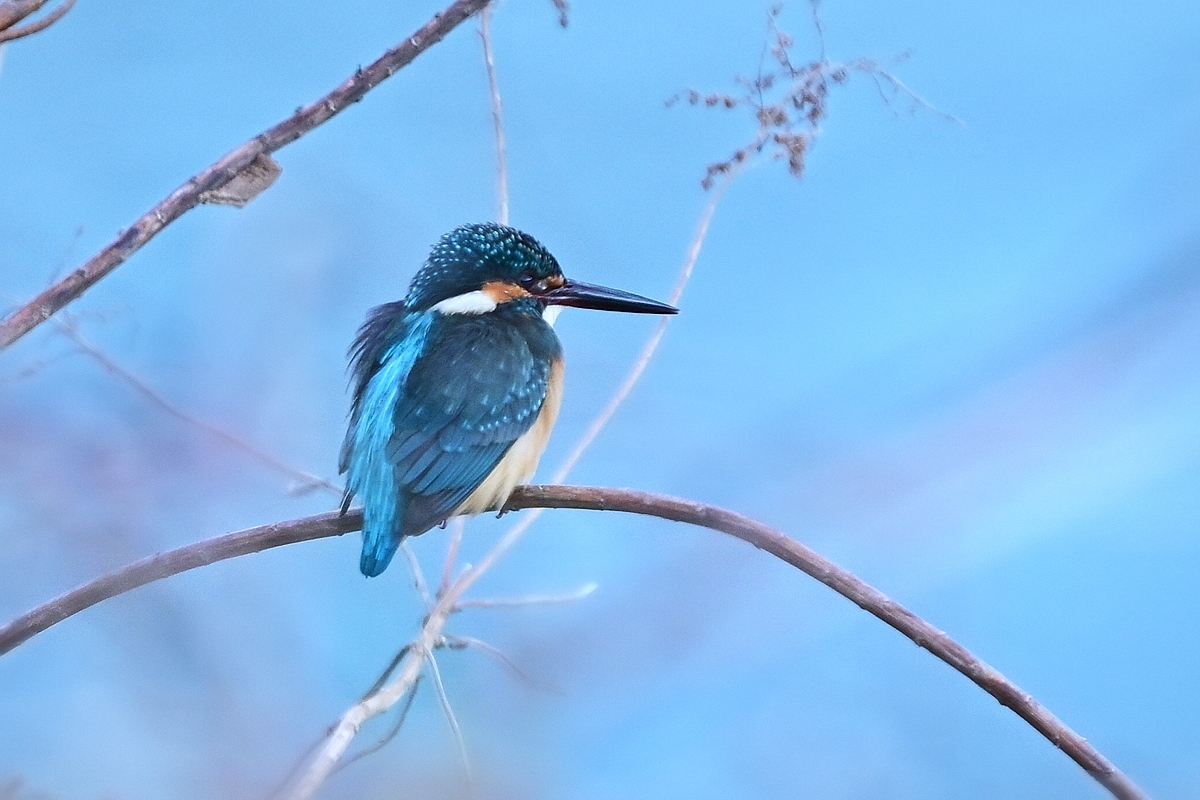 寒気が入ってとても冷たい日の夕方、川岸にわずかに姿を