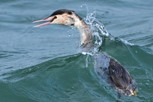 | 「波乗り カンムリカイツブリ」(桑名市) | |||