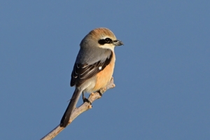 員弁川の川岸で、近くに留まったモズ(オス)を撮影。