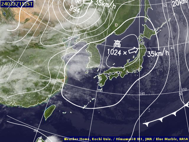 | 地上(高知大学気象情報頁赤外画像と気象庁速報天気図を合成) | |||