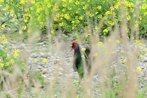 菜の花が咲く中州付近では、キジやカワアイサも。