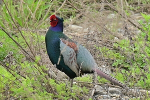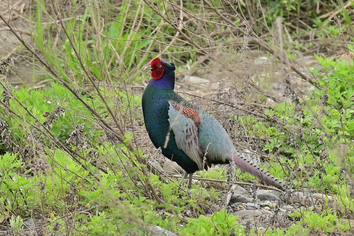 員弁川の中州でキジ(オス)が頻繁に姿を見せるようになり、