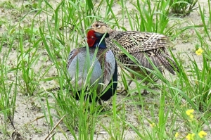 揖斐川にて、オオヨシキリを撮影。もう来ている季節かなと思って 行ってみると、けっこうな個体数になって、にぎやかな鳴き声です。 員弁川では今日も中州にキジが登場。そして、ついにメスのキジも登場! オスとメスがいっしょにいるのも撮影できました。メスは地味な色ですが ギョロッとした目が印象的です。 |