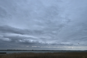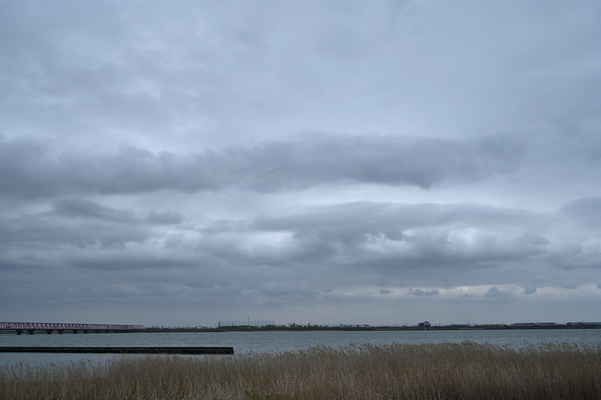 | 関東沖に進んだ高気圧の縁辺流が東海地方に南よりの 風になり、海上からの層積雲が押し寄せてきました。 朝から午前にかけては雨も降りました。 層積雲より下層では、南から積雲列も見られています。 冬に北西からの積雲列を見慣れていますが、南からの 積雲列は少しめずらしい雲のようにも感じられます。 また、夜には琵琶湖方面で強雷が発生しはじめ、 桑名周辺も雷鳴が聞こえてきています。 |