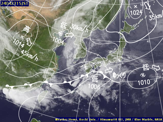 (高知大学気象情報頁赤外画像と気象庁速報天気図を合成)