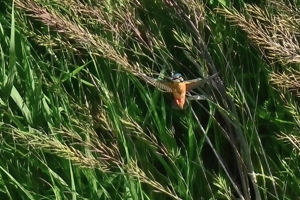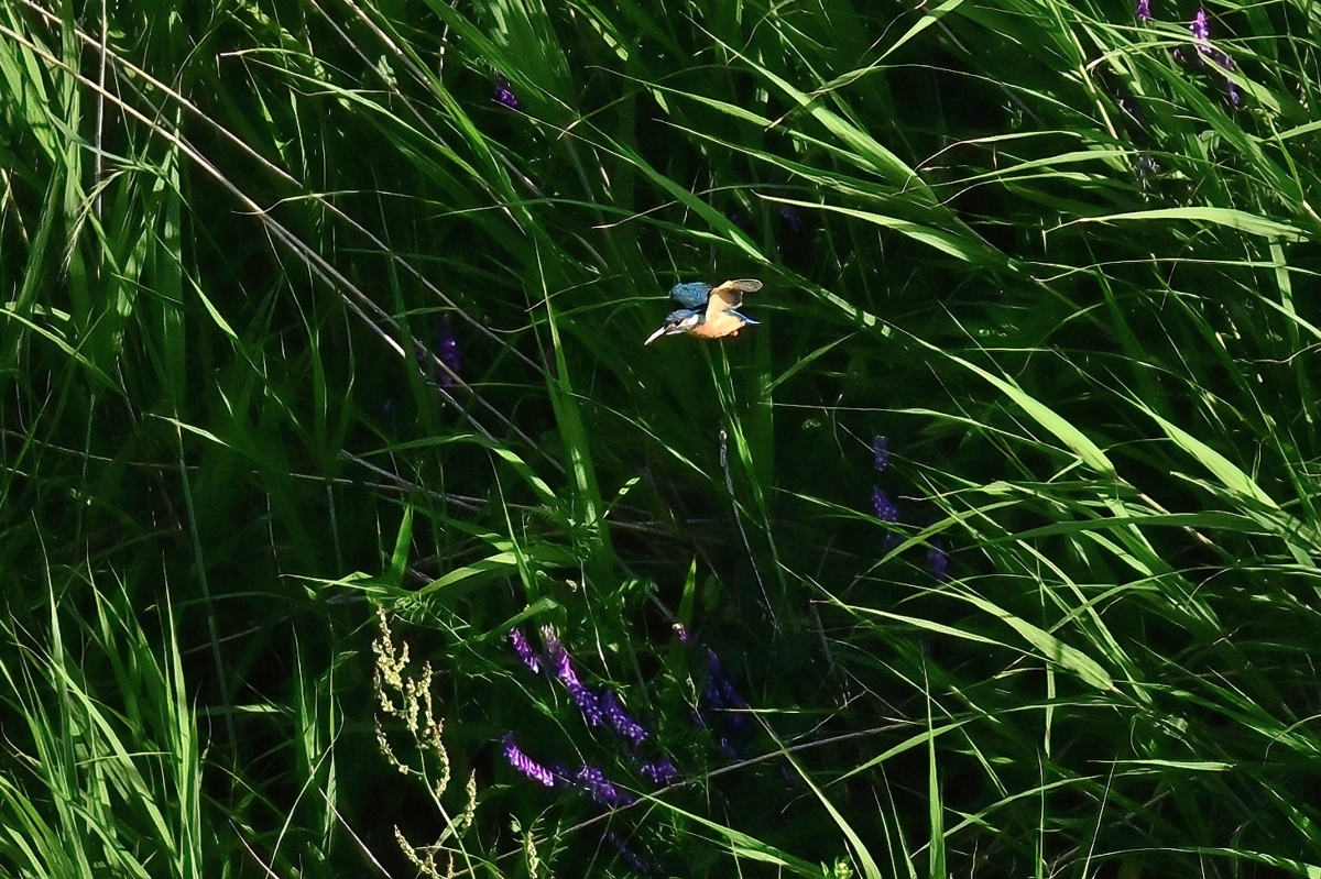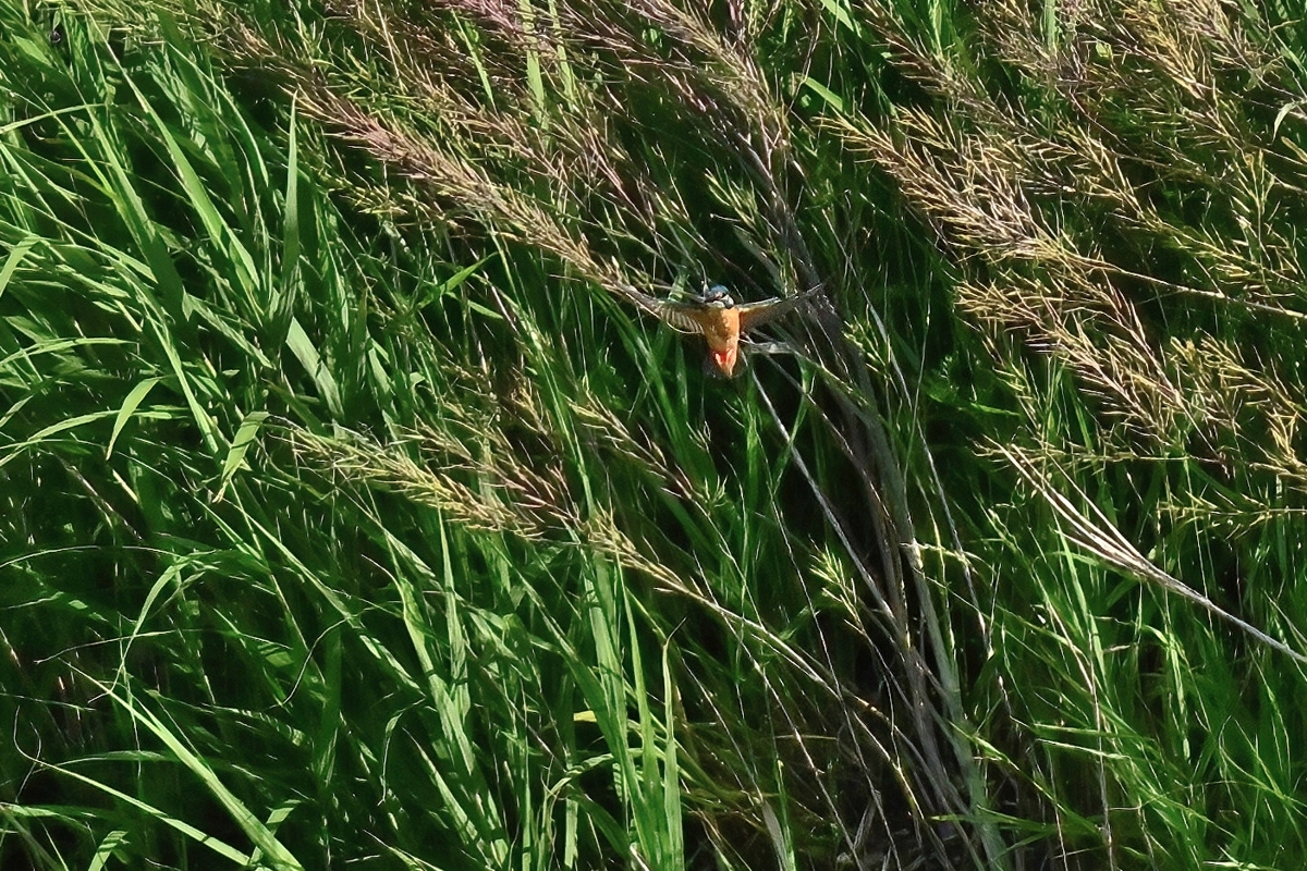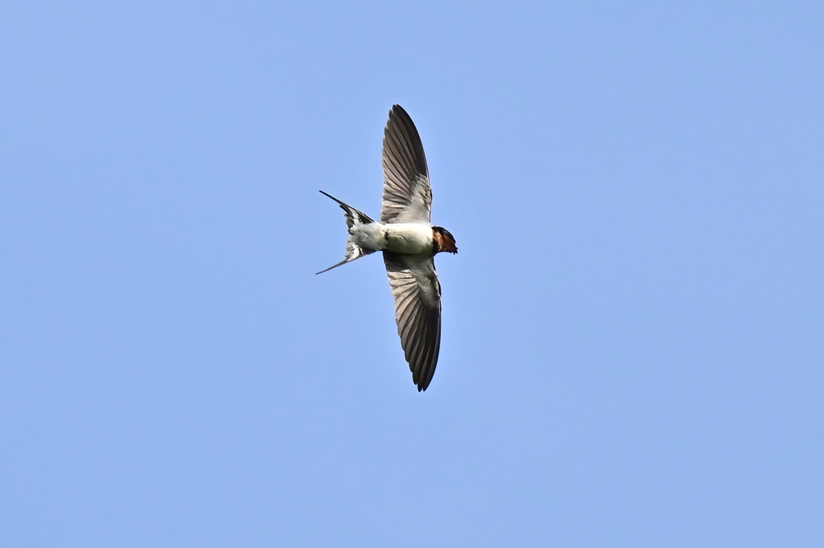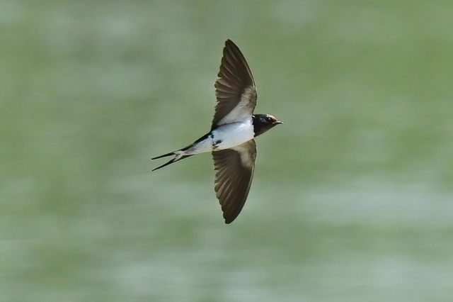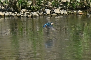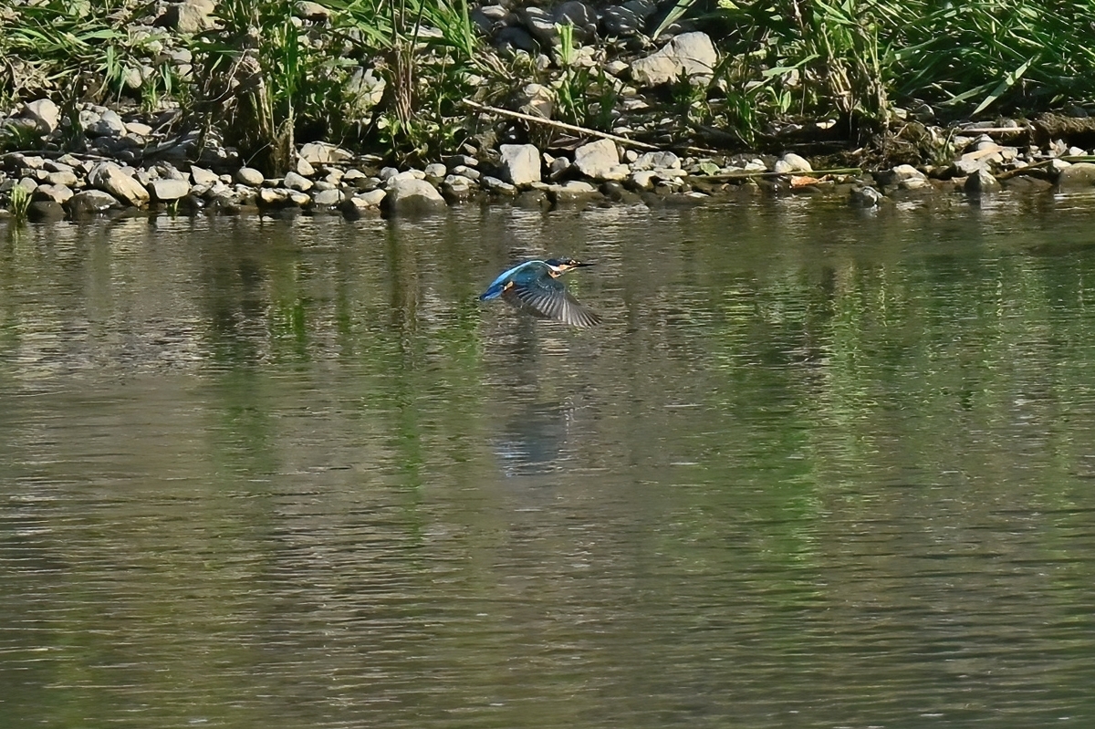 最高気温27.1℃、晴天の員弁川。 ツバメの数が激減していましたが、光線状態が良く、飛翔を撮影。 カワセミは対岸から中州の間で活動が見られ、手前側の岸付近は 一度通過したのみ。対岸(約100m)や中州付近(約70m)で ホバーリングの行動が見られたりしました。 |