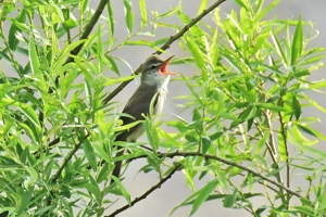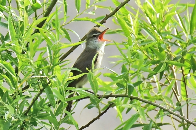 | 員弁川の中州では、4月からオオヨシキリの声が聞こえても ずいぶん遠い場所にいるために姿が見られませんでした。 今日は川岸の近くに登場し、若葉の隙間からさえずる様子が 見えました。ここのオオヨシキリの個体数はわずかなようです。 カワセミは中州の端の浅瀬の枝に登場。 このポイントに留まるのを見るのは初めてです。 カワセミが水面に飛び込む直前・直後の比較ができます。 同じポイントのとても低い場所でホバーリングするのも 見られ、次回はもう少し近づいて撮影したいところです。 |