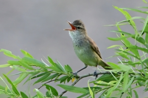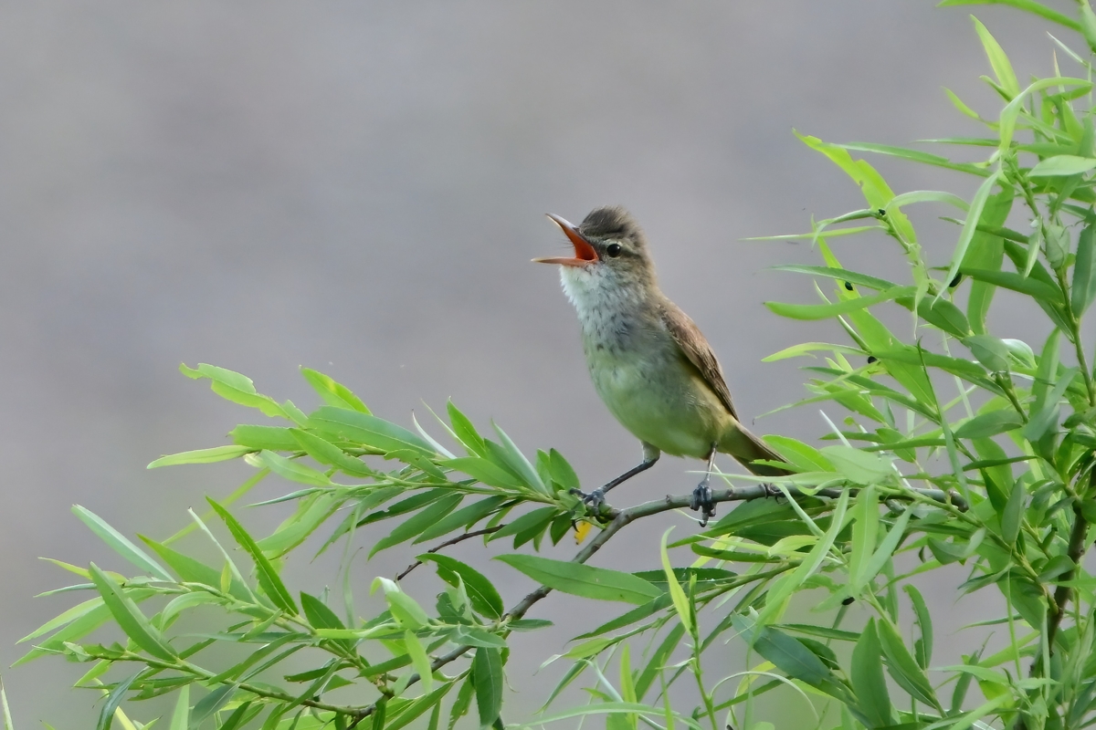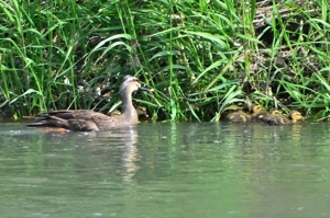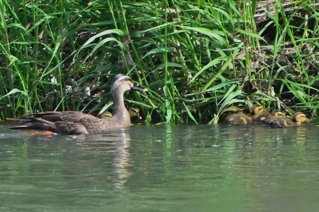| 員弁川にて。 対岸の隅をいそいそと泳いでゆくカルガモの親子連れがいました。 ずいぶん昔に、都会での「カルガモ家族の引っ越し」が毎年のように ニュースになりましたが、それらは歩いていく姿でした。泳いでゆく 親子連れですが、小さな雛がものすごく一生懸命に泳いでいるのが とても印象的でした(けっこうスピードが出ています)。 員弁川のオオヨシキリも、頻繁に姿を見せるようになりました。 |