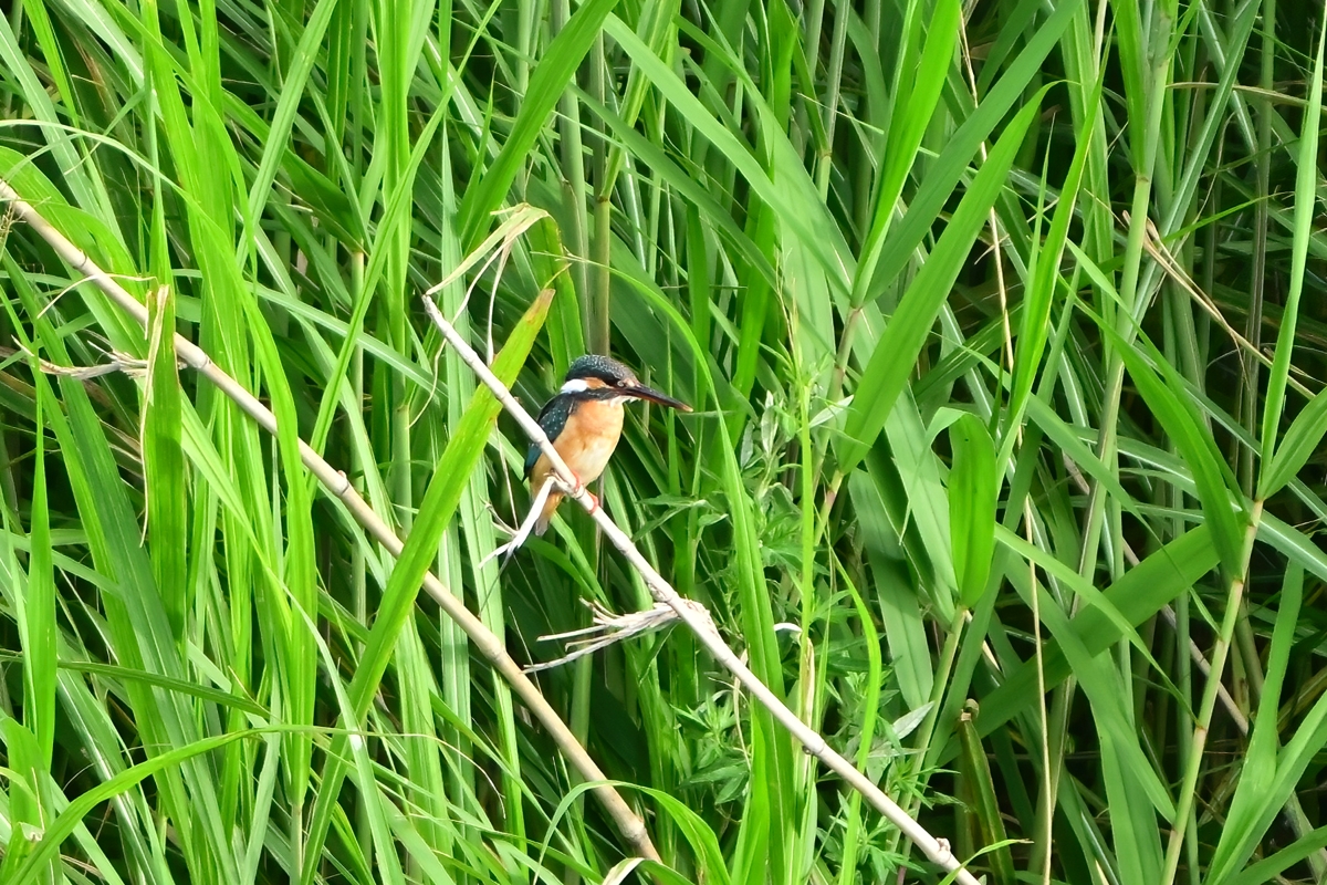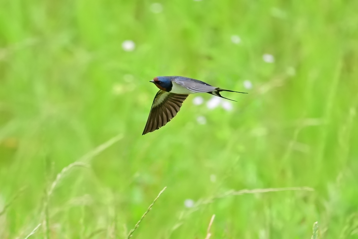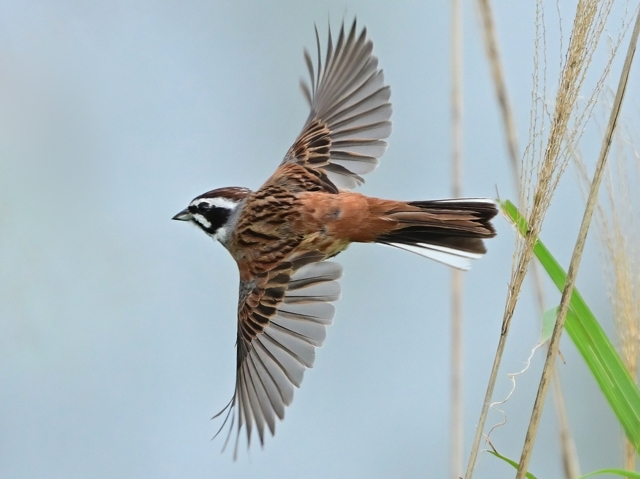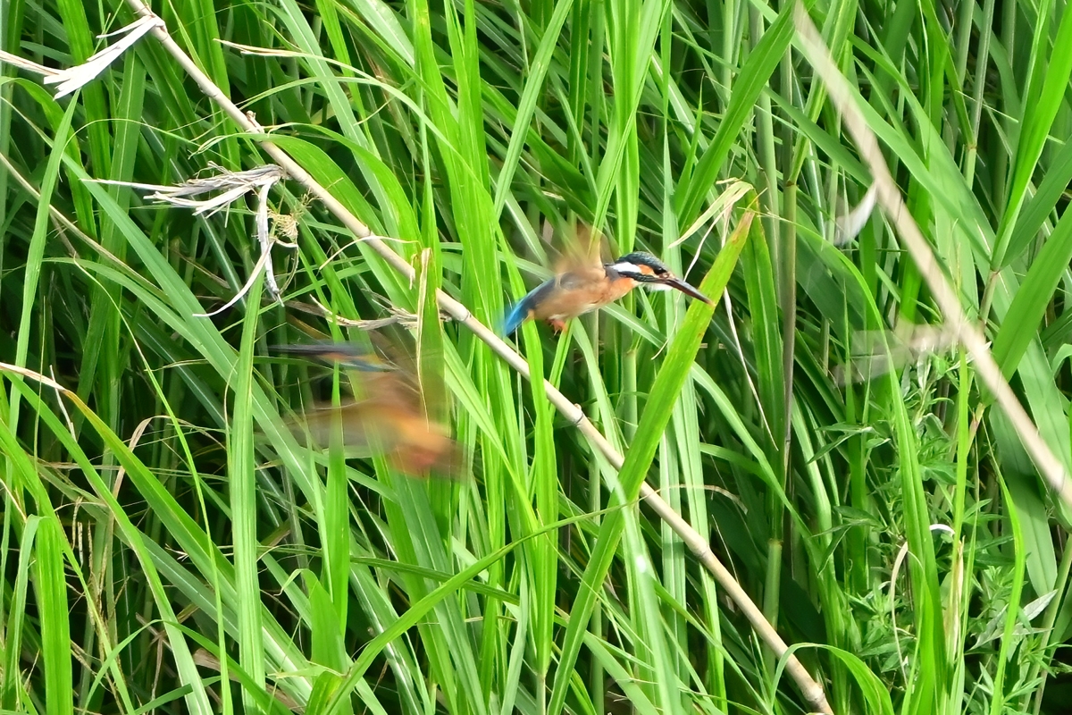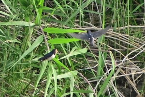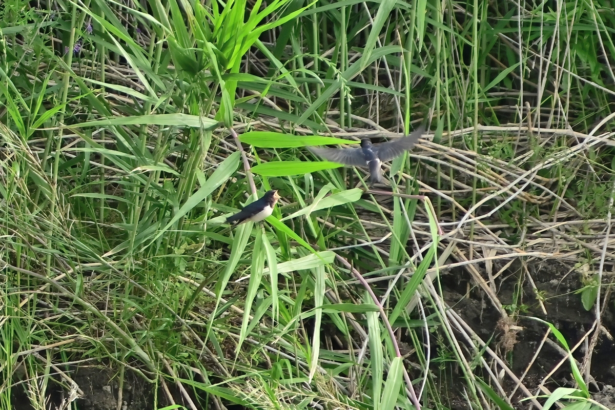 | 夕方の員弁川にて。 川岸のすぐ近くにホオジロ(オス)が2回やってきました。 背景が大きくボケる構図で、飛び立ちを撮影できました。 約100m遠方の対岸では、巣立ったばかりと思われる 複数のツバメが、練習するかのように飛び回っています。 また、2羽のカワセミも対岸にいて、動き回っていました。 不明瞭ですが、オスとメスのように思います。 |
